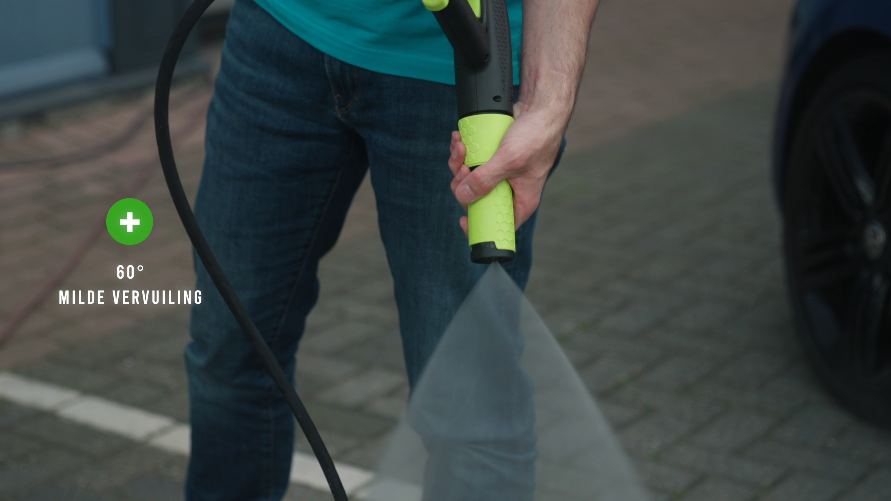 Op het gebied van nozzles krijg je voldoende keuze: een smalle straal (20 graden) voor hardnekkig vuil, een brede (60 graden) voor afspoelen en een combinatievariant. Dankzij de bajonetaansluiting wissel je snel en veilig, zonder gedoe.