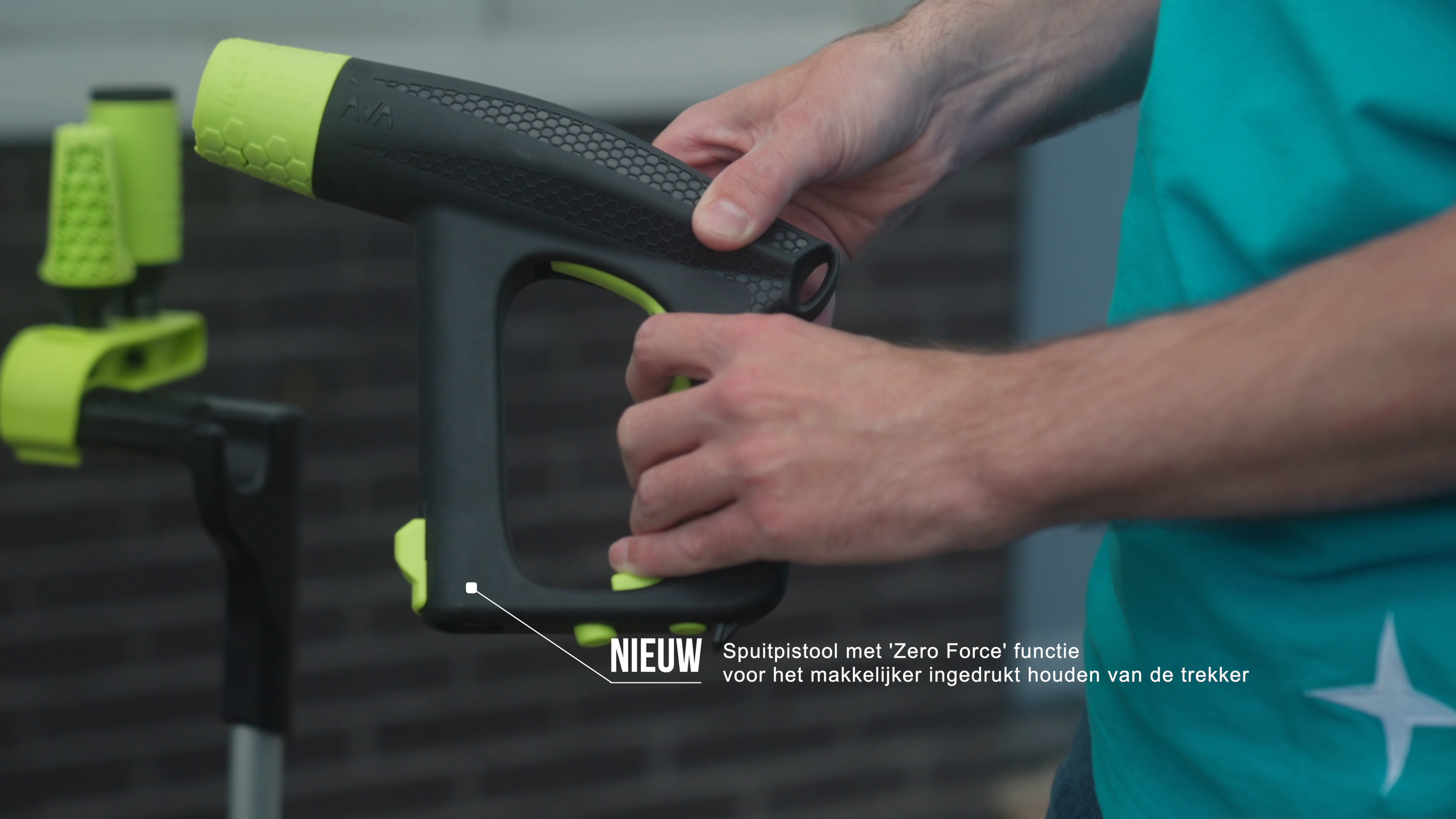 Dan het spuitpistool met de zogenaamde Zero Force functie. Dat klinkt misschien als marketingpraat, maar het werkt verrassend goed.