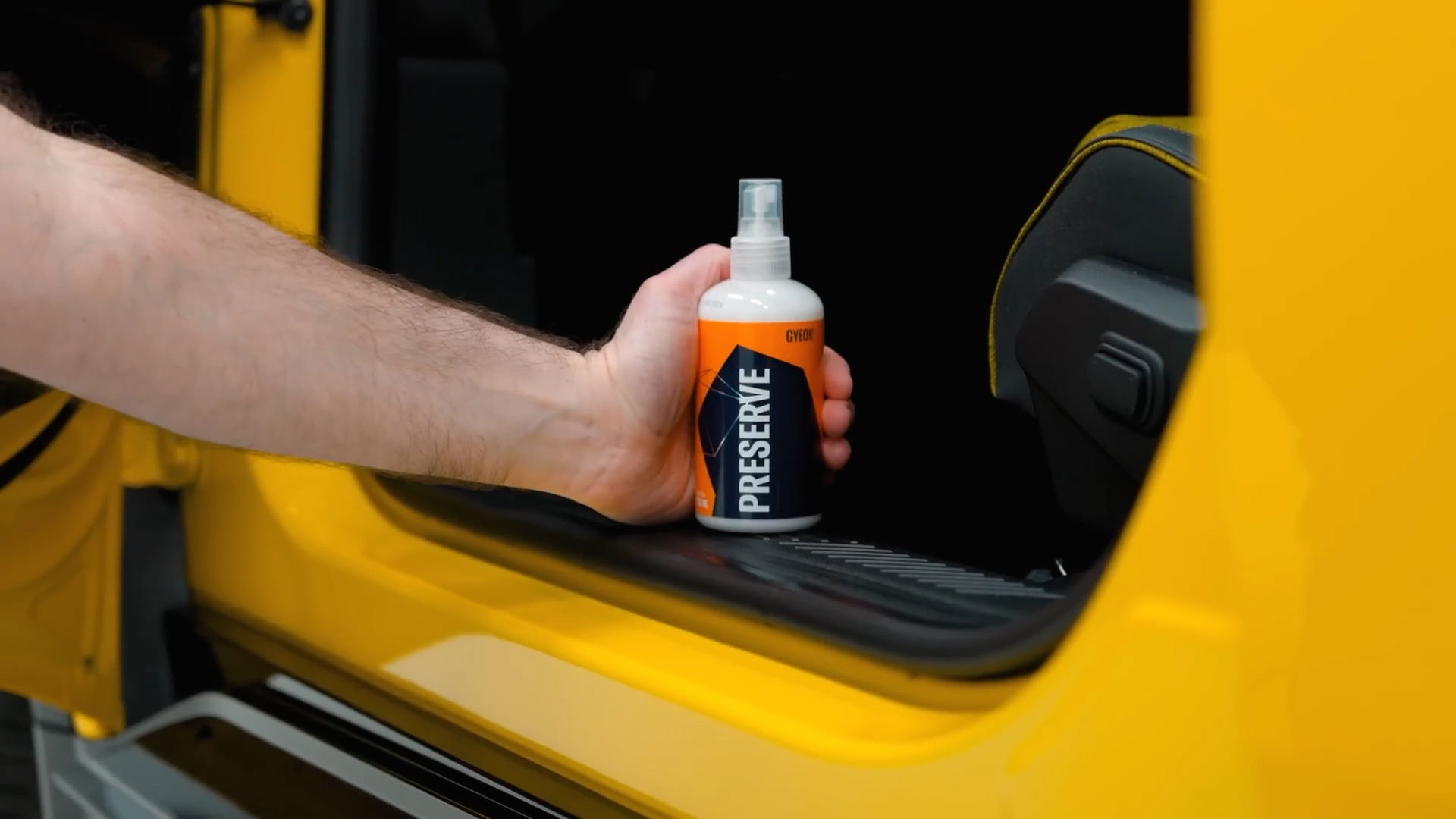To protect the plastics and trims, we apply GYEON Q²M Preserve. This creates a UV-resistant layer with a subtle satin finish. The dashboard, door panels, and other plastic parts get a well-maintained look without excessive shine. For optimal results, we let it absorb for a bit and then wipe it down with a clean cloth. Not everyone is a fan of dressings on plastics, but in this case, the effect is subtle and stylish. It also helps prevent drying and discoloration caused by the sun.