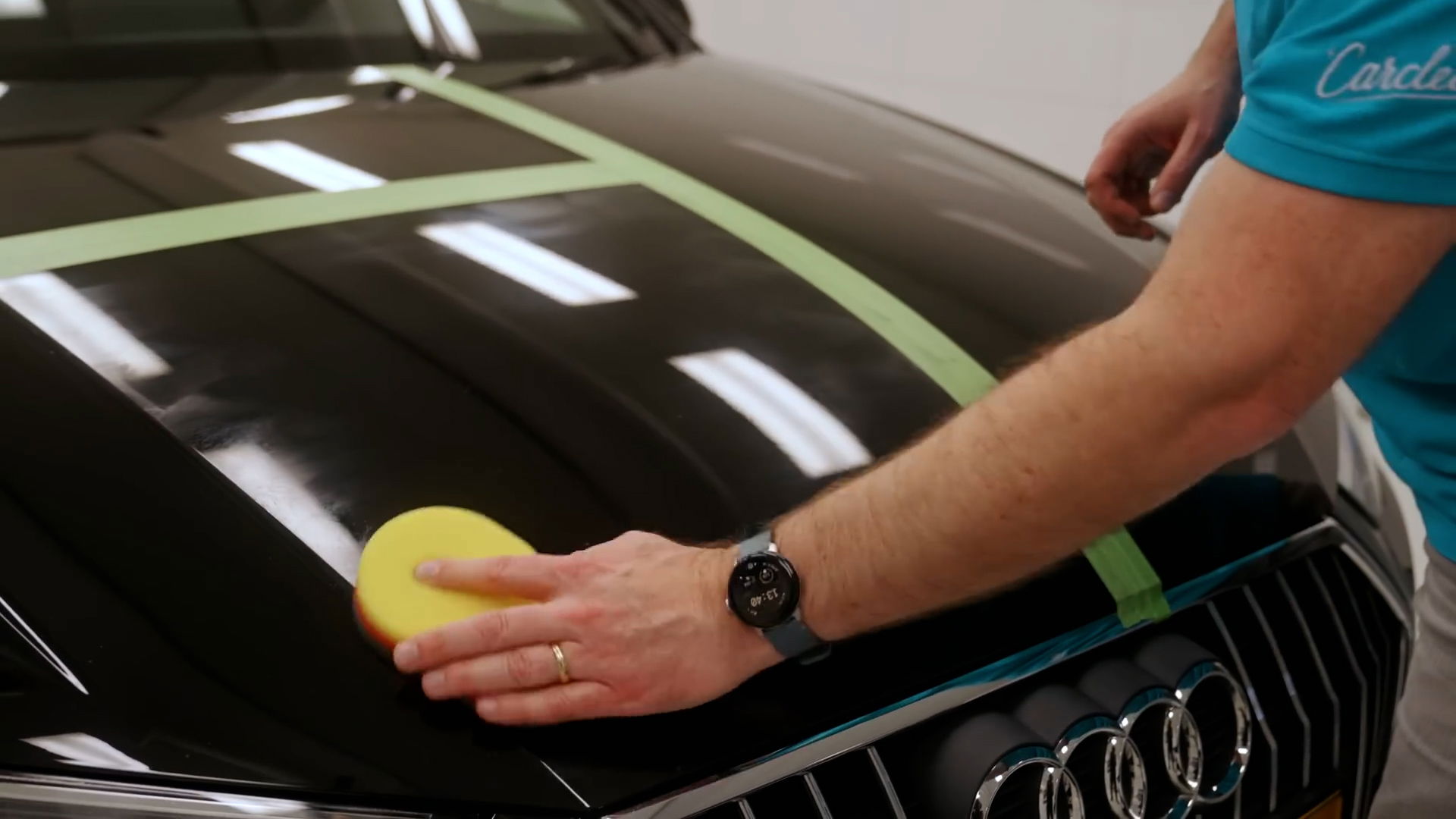 You can apply Black Hole both by hand and with a machine. Johan starts with the hood, applying it by hand. As he says: "A piece of cake, two fingers in your nose!"