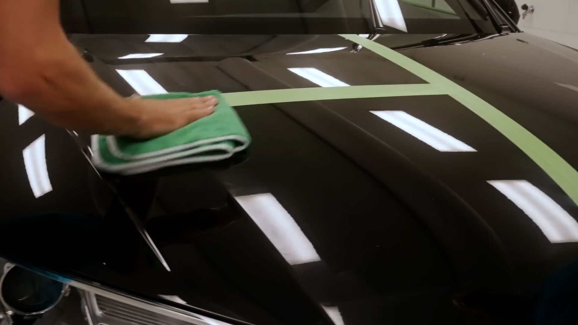 Apply a few dots onto a dry pad, without first moistening it with a detail spray. Be careful not to let the cord slide across your paint; it should go over your shoulder! Poorboy’s advises continuing until it starts to shine again. Wipe off with a clean microfiber cloth, like the Peluche Verde.