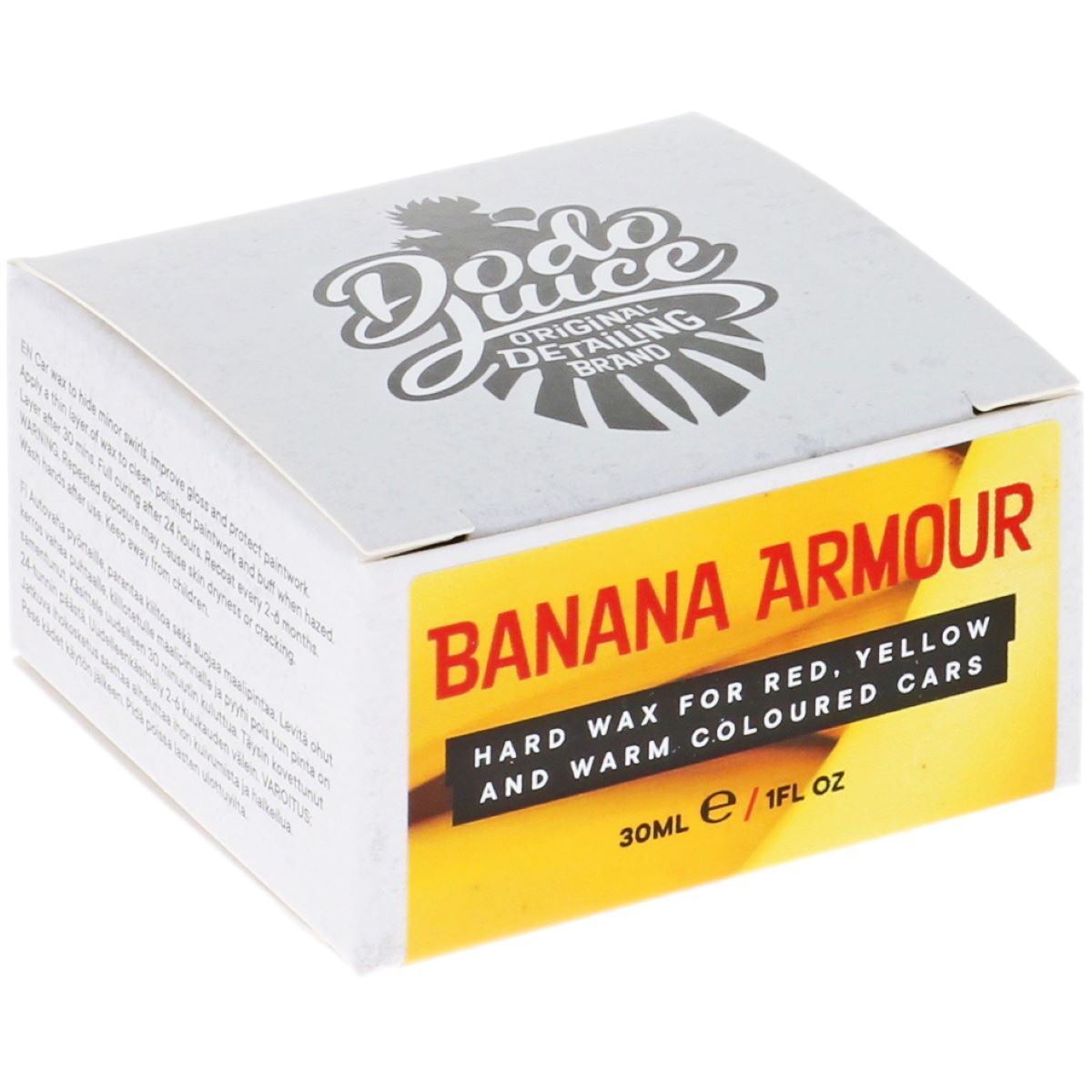 De Dodo Juice Banana Armour wax panel pot ofwel “Dodo Yellow” is de kleurrijke vaste wax voor de avontuurlijke detailer. Het is samengesteld uit de beste natuurlijke ingrediënten, speciaal voor warme lakkleuren en metallic lakken.