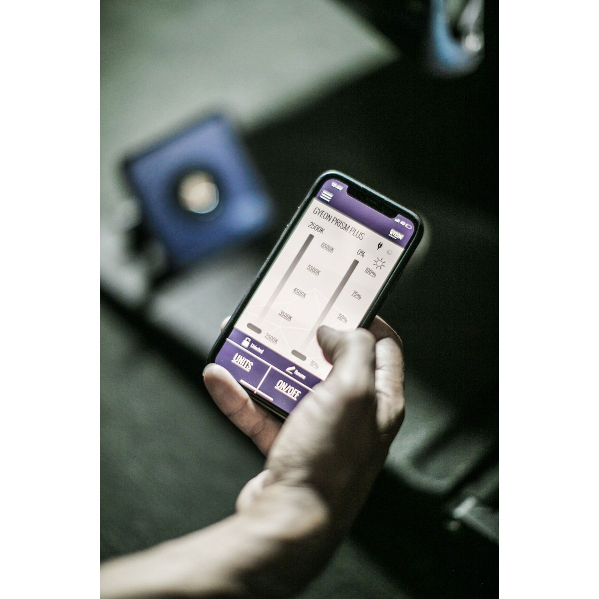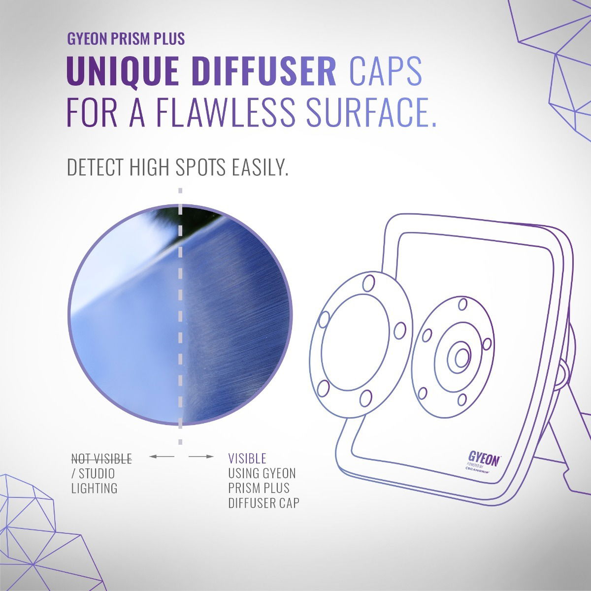 Het unieke aan de PRISM PLUS is de speciale kap die je over de lens kunt plaatsen. Hierdoor creeër je diffuus licht met soft-box effect. Dankzij dit licht is het mogelijk om bepaalde lakimperfecties perfect te kunnen zien die je zonder kap niet zou zien. Bovendien is diffuus licht ideaal als normaal werklicht. Via de Gyeon Quartz PRISM PLUS-app is het mogelijk om tot wel 5 PRISM PLUS-lampen te bedienen met je telefoon.