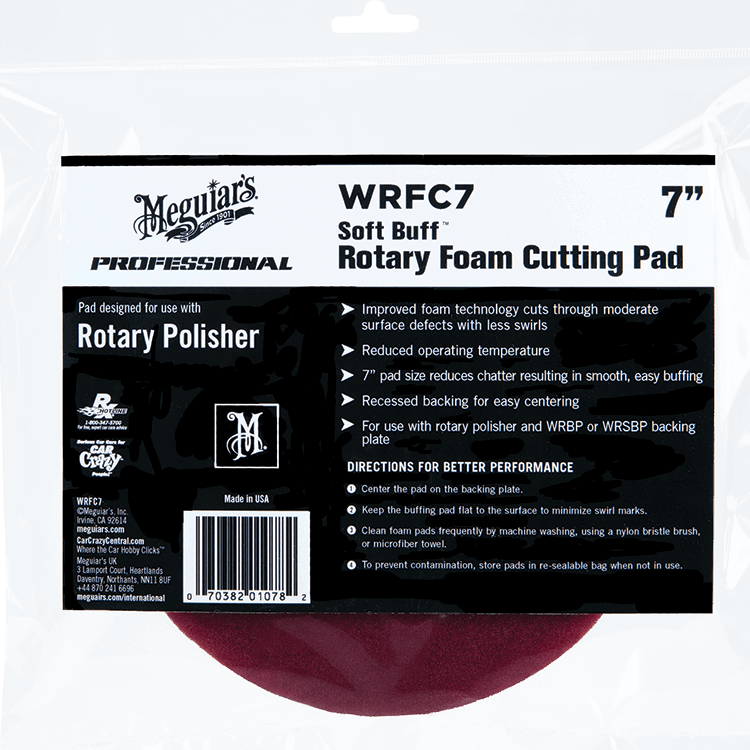 De nieuwe Meguairs Soft Buff Rotary Pads zijn gemaakt van verbeterde foam technologie t.o.v. de Soft Buff 2.0 pads. Verdiept velcro voor veiliger polijsten en makkelijker te centreren. Geschikt voor steunplaten van 150mm. Totaal formaat van de pad is 18cm. Let op: steunplaten van 180mm passen hier niet op!