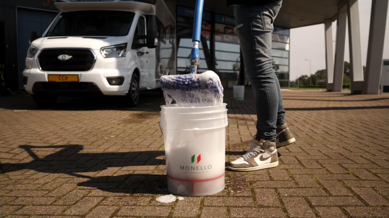 Voor een optimaal resultaat en om krassen te minimaliseren, is het aan te raden om de twee-emmer-wasmethode te gebruiken. Eén emmer met shampoo en één met schoon water om de handschoen uit te spoelen.