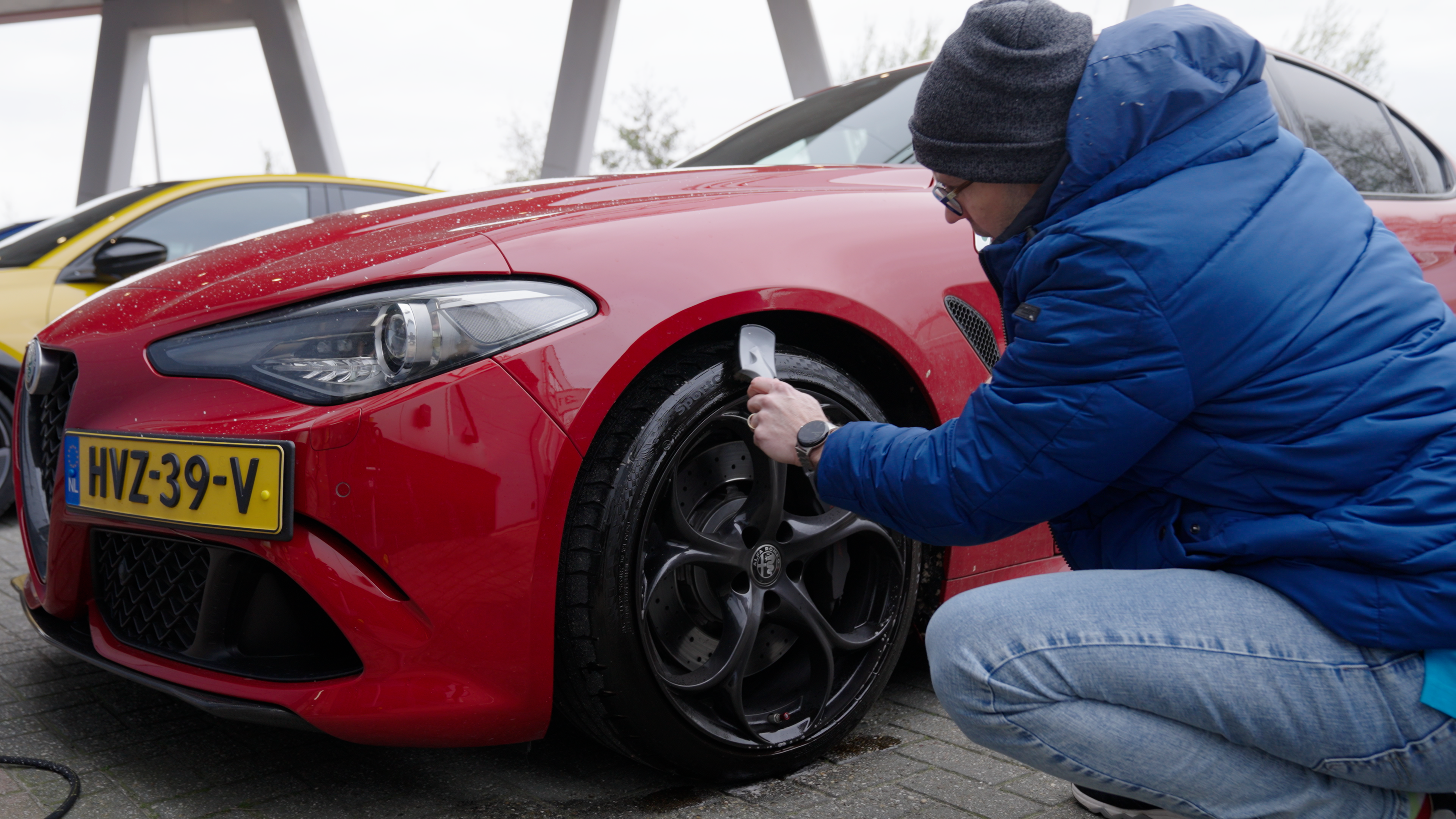 - Voorbereiden: Spoel de banden of het kunststof oppervlakken af om losse vervuiling te verwijderen.