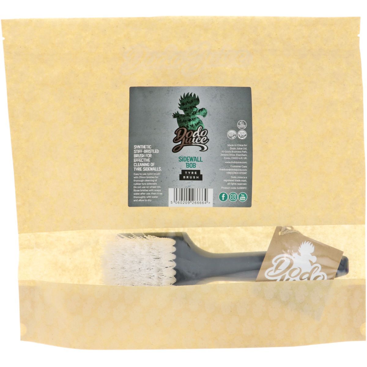 Sidewall Bob heeft 25mm lange, stevige, nylon haren, die het vet en vuil goed los kunnen maken, zodat je het kunt wegspoelen. Perfect om te gebruiken i.c.m. de Pneu Look of je andere favoriete bandenreiniger.