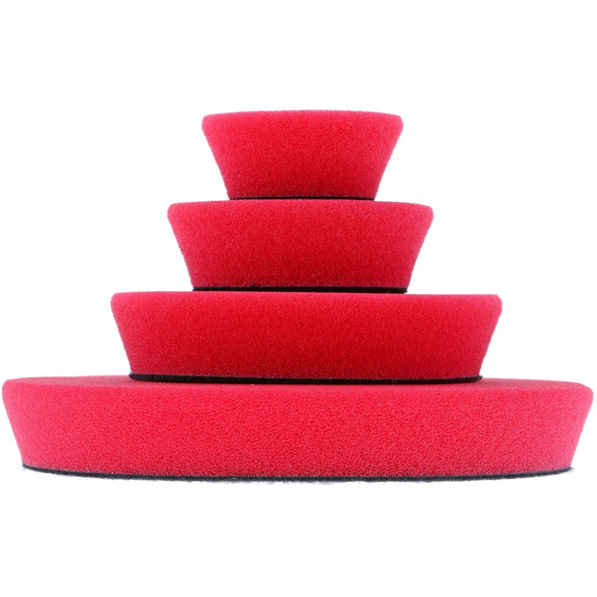 De pad is trapezevormig. Dit houdt in, dat het contactoppervlak van de pad op het lakwerk breder is, dan de kant van het velcro. Vooral bij polijstmachines met een grote excentrische uitslag is dat belangrijk, zodat de pad veel minder kan vervormen tijdens het polijsten.