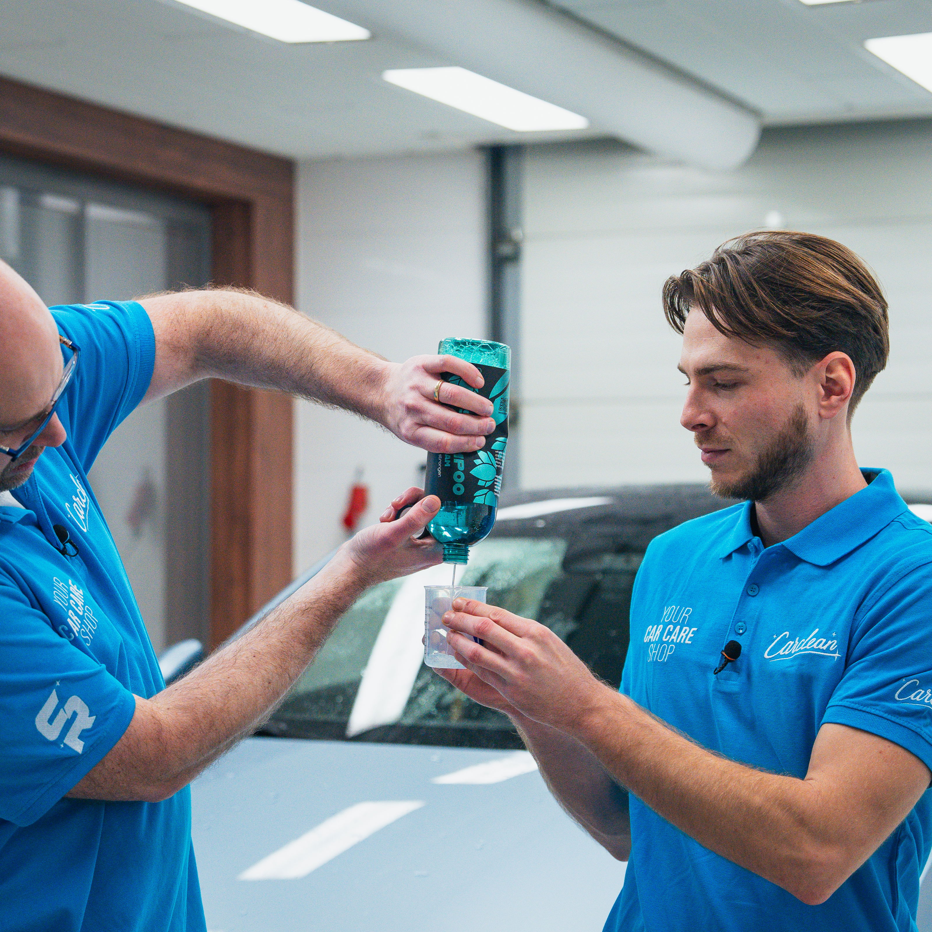 - Vul een emmer met water en voeg GreenX Shampoo & Foam toe in een verhouding van 1:200 (ongeveer 25 ml per 5 liter water).