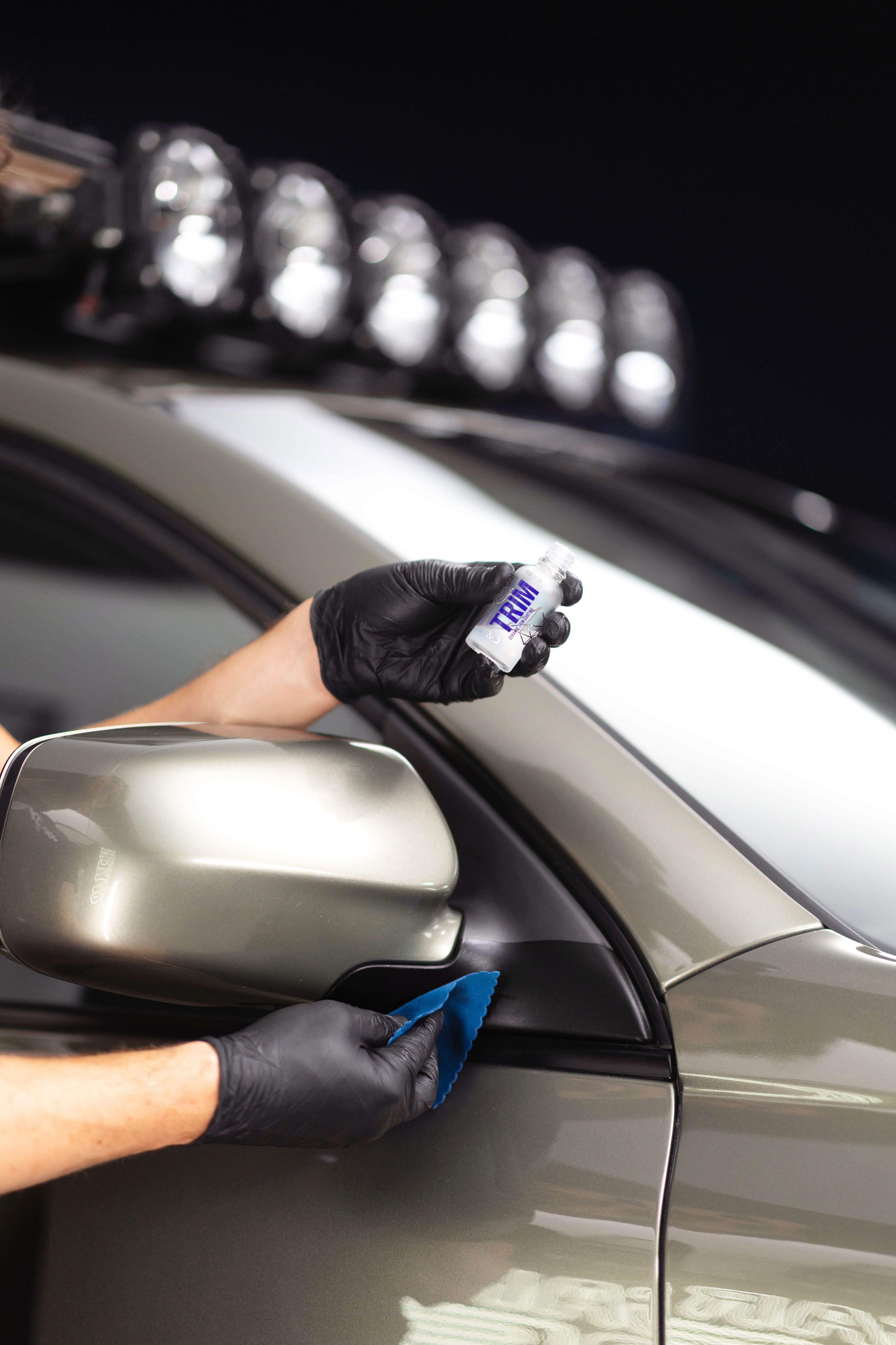 Ik gebruik deze al jaren. Na vele soorten spuitbussen, gels en dergelijke te hebben gebruikt was ik het zat om bij iedere wasbeurt weer die spullen aan te moeten brengen. Met Trim doe ik de raamrubbers en alle plastic delen die, qua kleur, dof geworden zijn. Zowel voor exterieur als interieur (rode gordelgesp). Voedt en brengt oorspronkelijke kleur terug, werkt waterafstotend en blijft meer dan 12 maanden actief. Ok, het is een investering, maar aanbrengen ( extra voorbereiden met Gyeon Prep) duurt in principe bijna even lang als de goedkopere spray of gels. Een serieuze tijdsbesparing, daar ik het maar 1 keer per jaar of langer, hoef te doen.