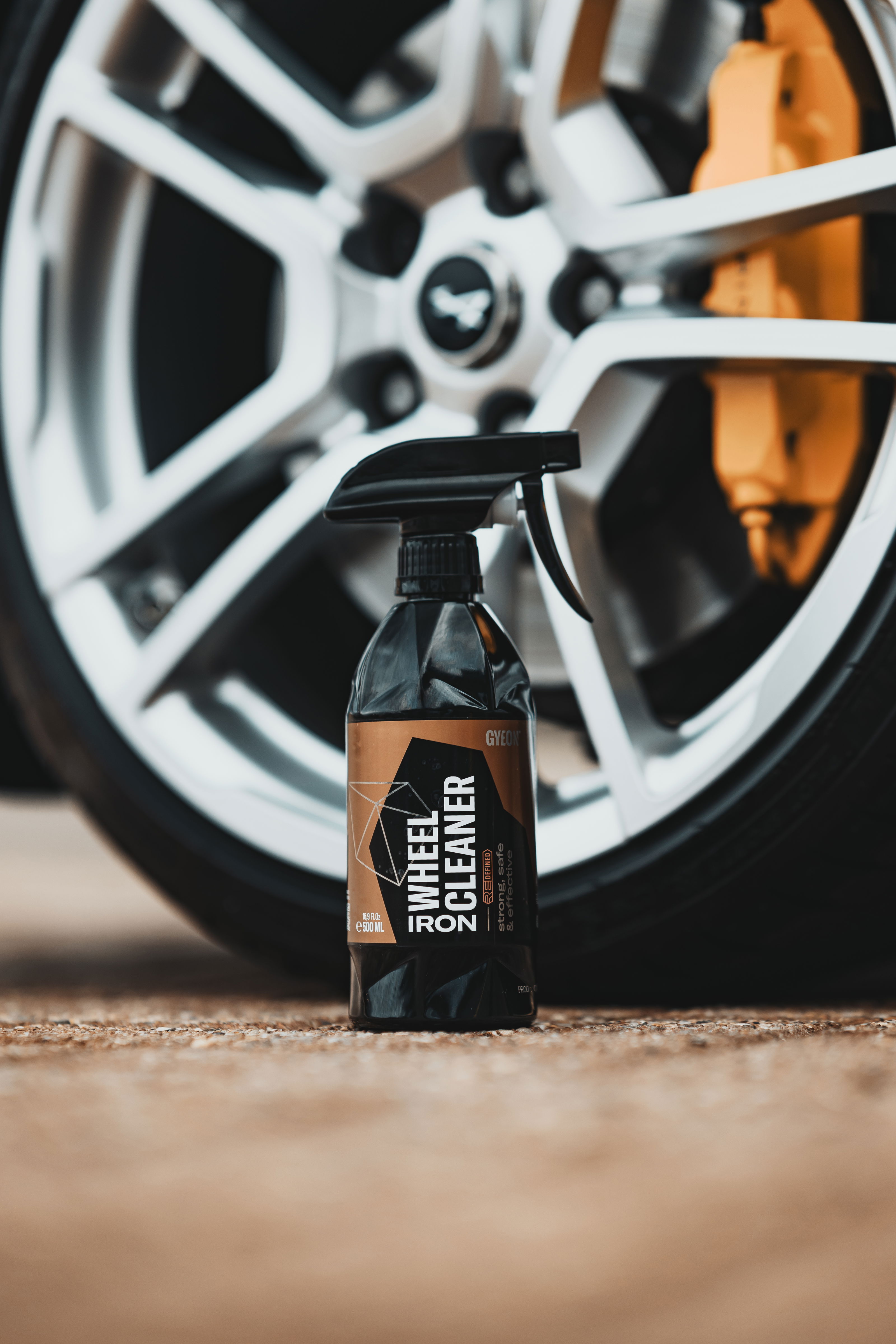 - Spuit de Iron WheelCleaner rijkelijk op de velg en de remklauw