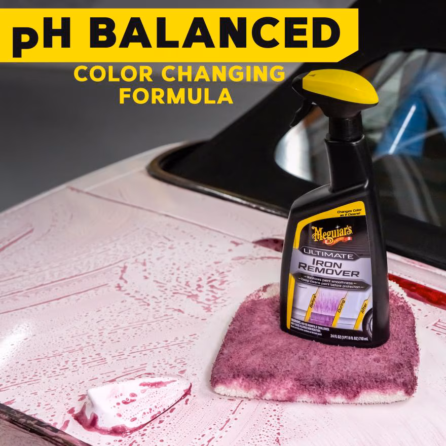 Wil je jouw auto weer laten stralen? Met de Ultimate Iron Remover van Meguiar's verwijder je moeiteloos ingebedde ijzerdeeltjes, industriële neerslag en remstof van lak, glas en chroom. Deze krachtige, licht-zure formule verandert van kleur terwijl het de verontreinigingen oplost, zodat je precies ziet waar het werkt. Het resultaat? Een gladde, heldere lak die klaar is voor verdere behandeling.