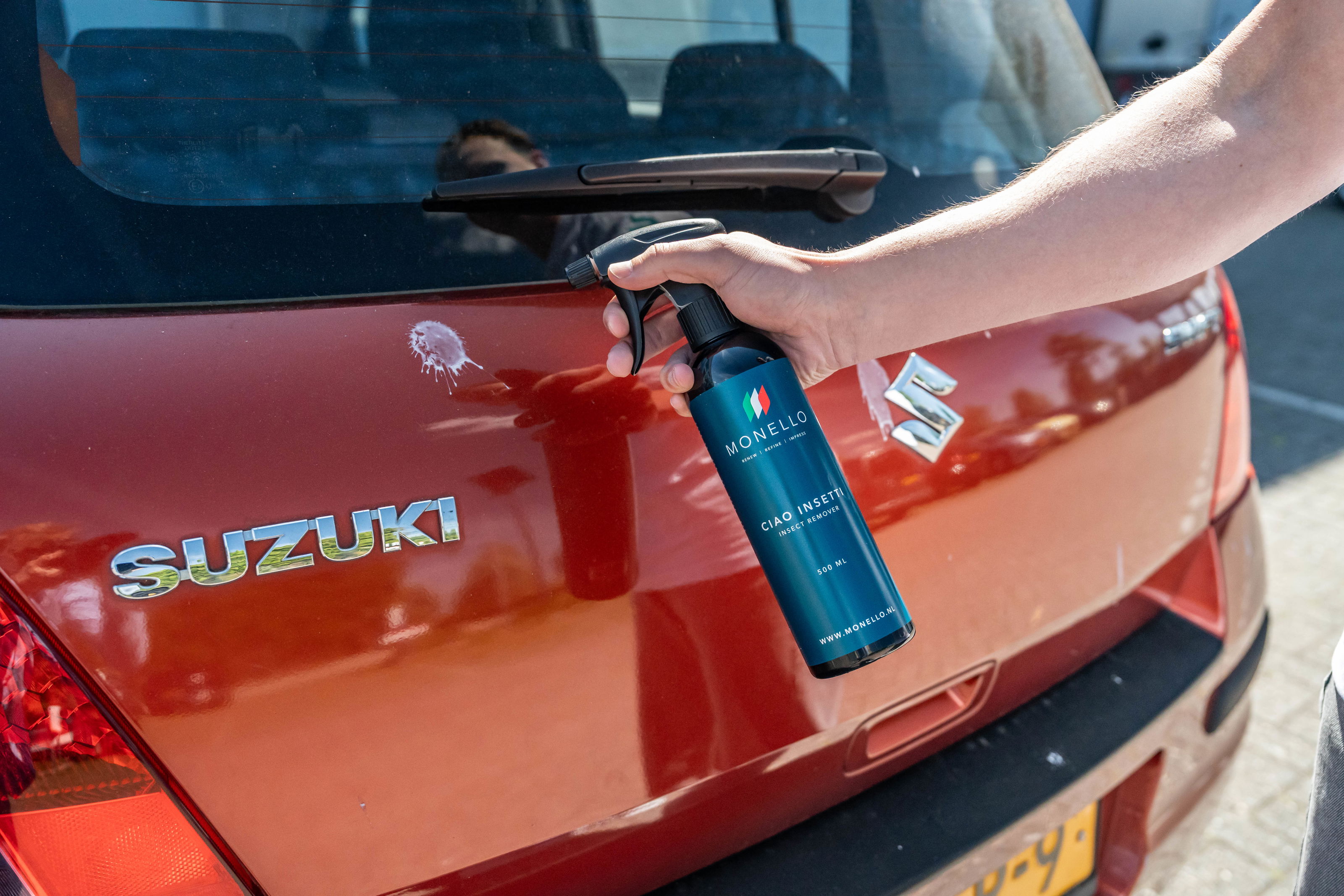 Monello Ciao Insetti komt ook buiten het insectenseizoen prima tot zijn recht. Hardnekkige vogelpoep, boomsappen en groene aanslag van bomen of regenweer? Geen probleem. De krachtige reinigende eigenschappen maken korte metten met deze ongewenste vervuiling, zonder je lak te beschadigen. Handig voor wie geen zin heeft in krabben, schrobben of meerdere producten: met Ciao Insetti pak je het in één keer aan. En ja, ook die mysterieuze vlek op je spiegel? Gewoon sprayen, inwerken en weg ermee.