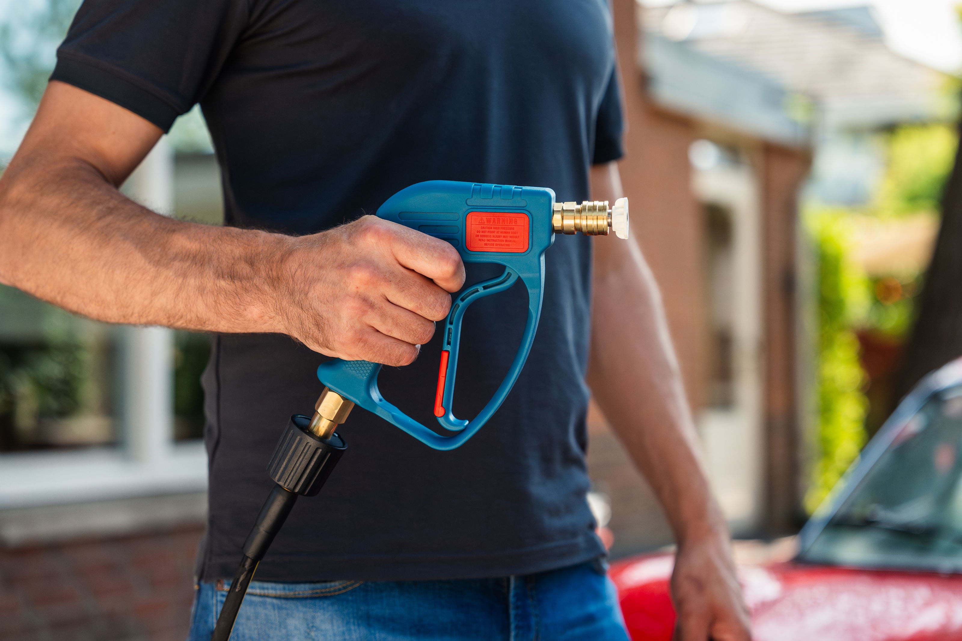 Bij dit spuitpistool krijg je standaard vier verschillende opzetstukken meegeleverd. Elk opzetstuk heeft een andere sproeihoek: 0°, 15°, 25° en 40°, zodat je altijd de juiste straal hebt voor elke schoonmaakklus. Van gerichte kracht voor hardnekkig vuil tot een brede waaierstraal voor het naspoelen van je auto, je wisselt eenvoudig tussen de nozzles dankzij het quick-release systeem. Alles wat je nodig hebt om efficiënt en effectief te reinigen, zit al in de doos.