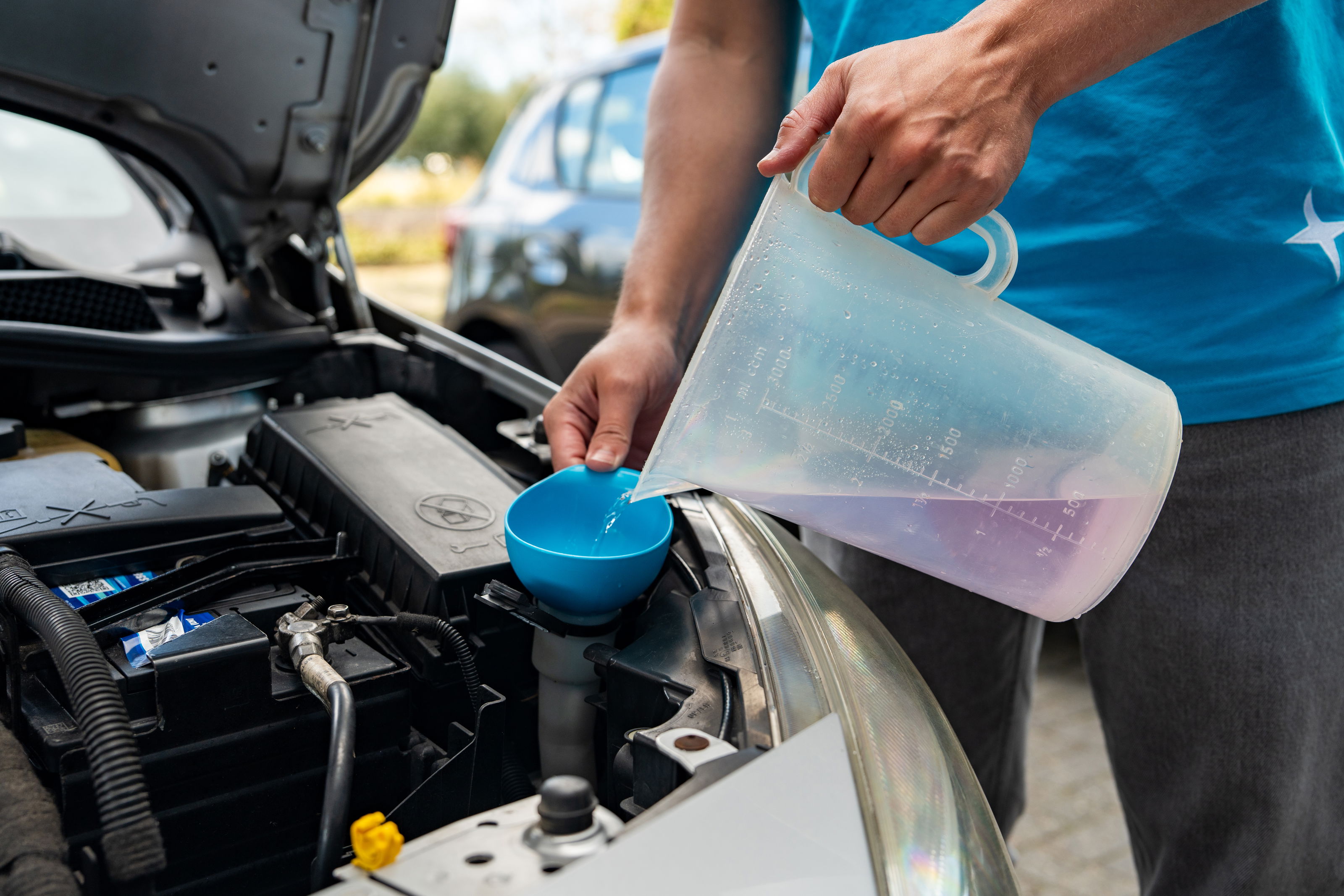 Giet het mengsel in het ruitensproeierreservoir.