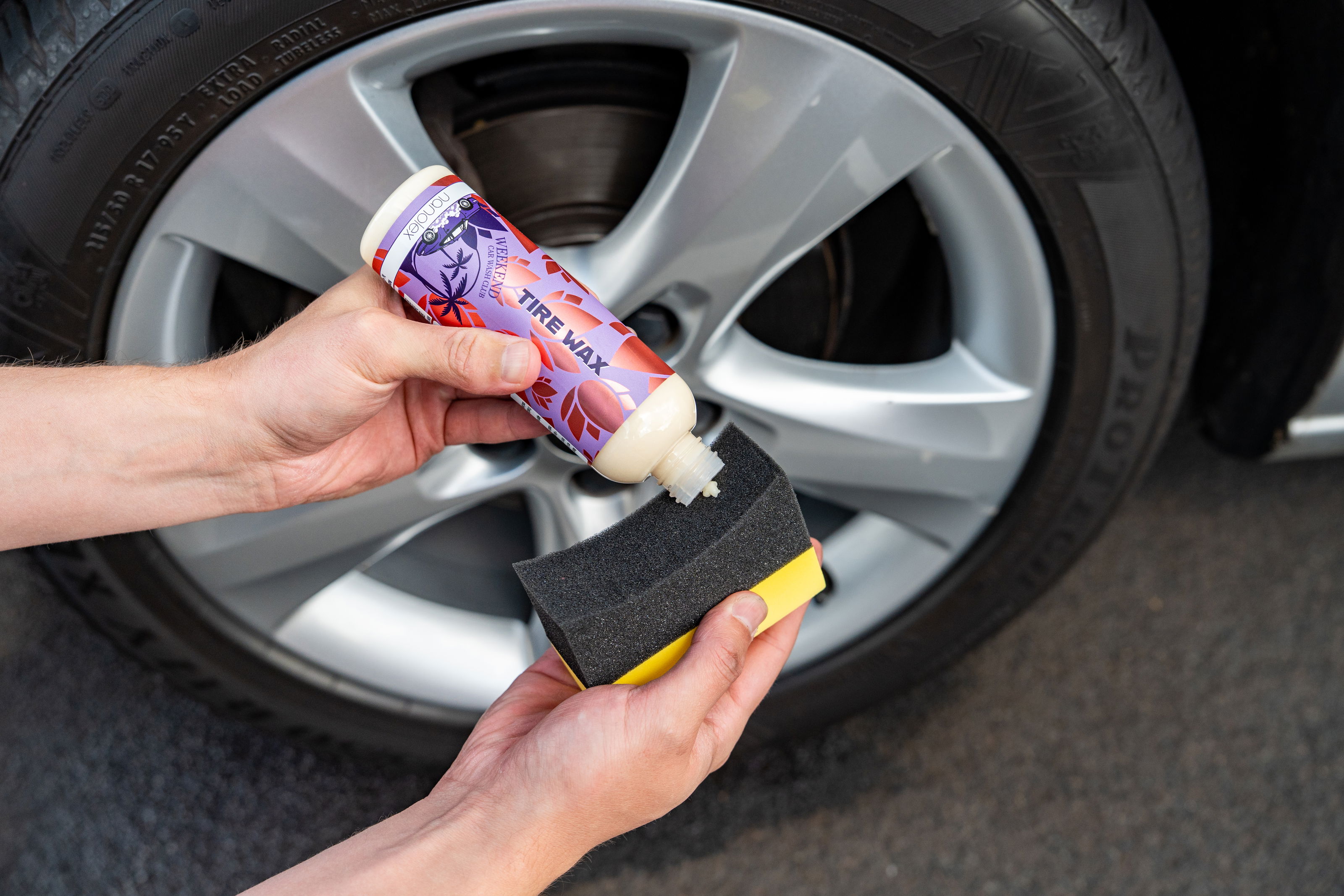 Breng een kleine hoeveelheid Tire & Wax aan op een applicator pad.
