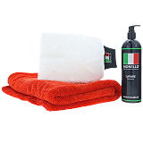 De exterieurkwast heeft wat zachtere haren en een rode kraag. Deze is geschikt voor het reinigen van logo's, grilles, velgen en bijvoorbeeld de motorruimte.